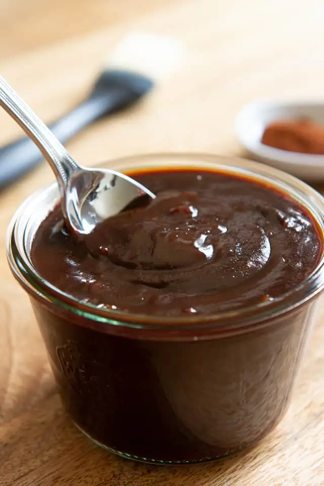 - Place the pan over medium heat and bring to a rapid simmer. Reduce heat to maintain a gentle simmer. Cook, whisking occasionally, until the sauce is glossy and thickened, about 15 minutes.